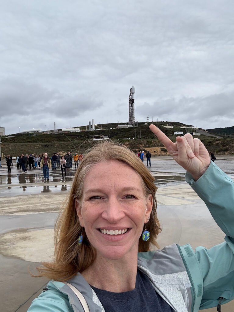 Due to the extended U.S. government shutdown, the public outreach and media activities were very limited for the Sentinel-6B launch. Fortunately, this did not impact the launch schedule, and I was able to still participate in a launch pad viewing and some pre-launch activities. Fun facts about the pictures below: 1) The viewing location of the launch pad is actually the landing site at Vandenberg for the SpaceX first stage boosters! 2) The model is a 1/3 scale of the Sentinel-6 satellites, and I’m pointing to the radiometer instrument that I worked on from 2016 to 2020 and discussed in my “Earth, My Favorite Planet” post.